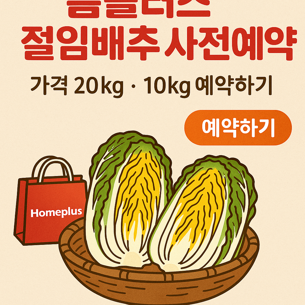 홈플러스 절임배추 사전예약은 매년 인기 있는 행사로, 품질 좋은 해남·괴산 배추를 저렴하게 구매할 수 있는 절호의 기회입니다.